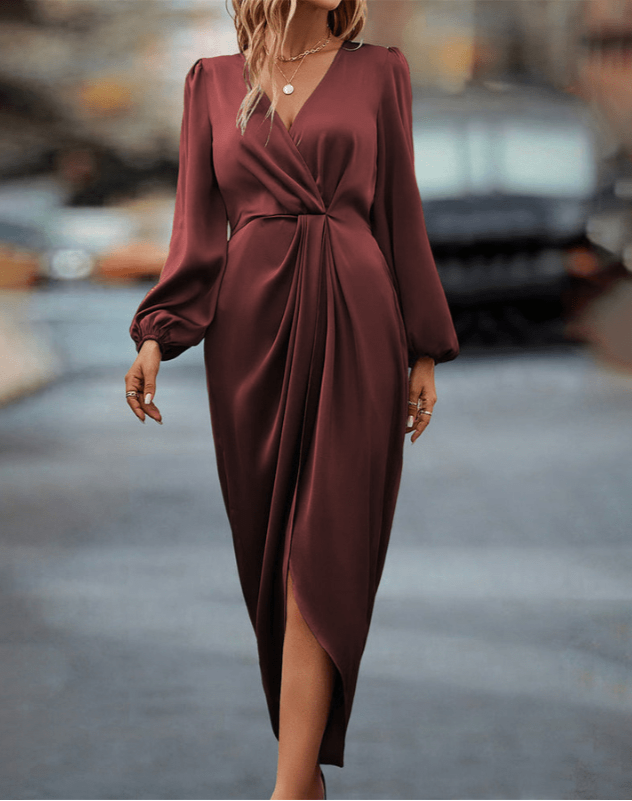 مارغريت | فستان أنيق بتصميم متقاطع بأكمام طويلة
