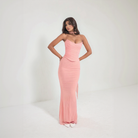 هذا النموذج المكون من قطعتين يجمع بين بلوزة بدون حمالات بقصة مشد و تنورة طويلة ضيقة لتبرز القوام. كل تفصيل يبرز مظهراً أنيقاً وعصرياً. زي مثالي لأرقى مناسباتك.