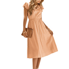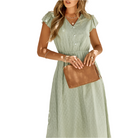 هذا الفستان الصيفي الخفيف يوفر فتحة عنق على شكل V جذابة وأكمام مزخرفة لمسة رومانسية. قصته السائلة تضمن راحة مثالية طوال اليوم. مثالي للخروج في المدينة، أو تناول الفطور المتأخر، أو الإجازات.