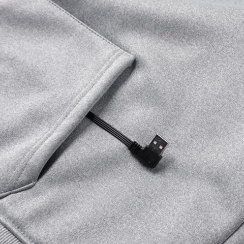 Tento svetr je navržen tak, aby vyzařoval teplo tam, kde ho tělo nejvíce potřebuje, vpředu i na zádech. Vyhřívací systém se napájí jednoduše pomocí externí baterie připojené kabelem USB v kapse. Ideální pro chladné dny, snadno se integruje do vašich každodenních outfitů, ve městě nebo venku.