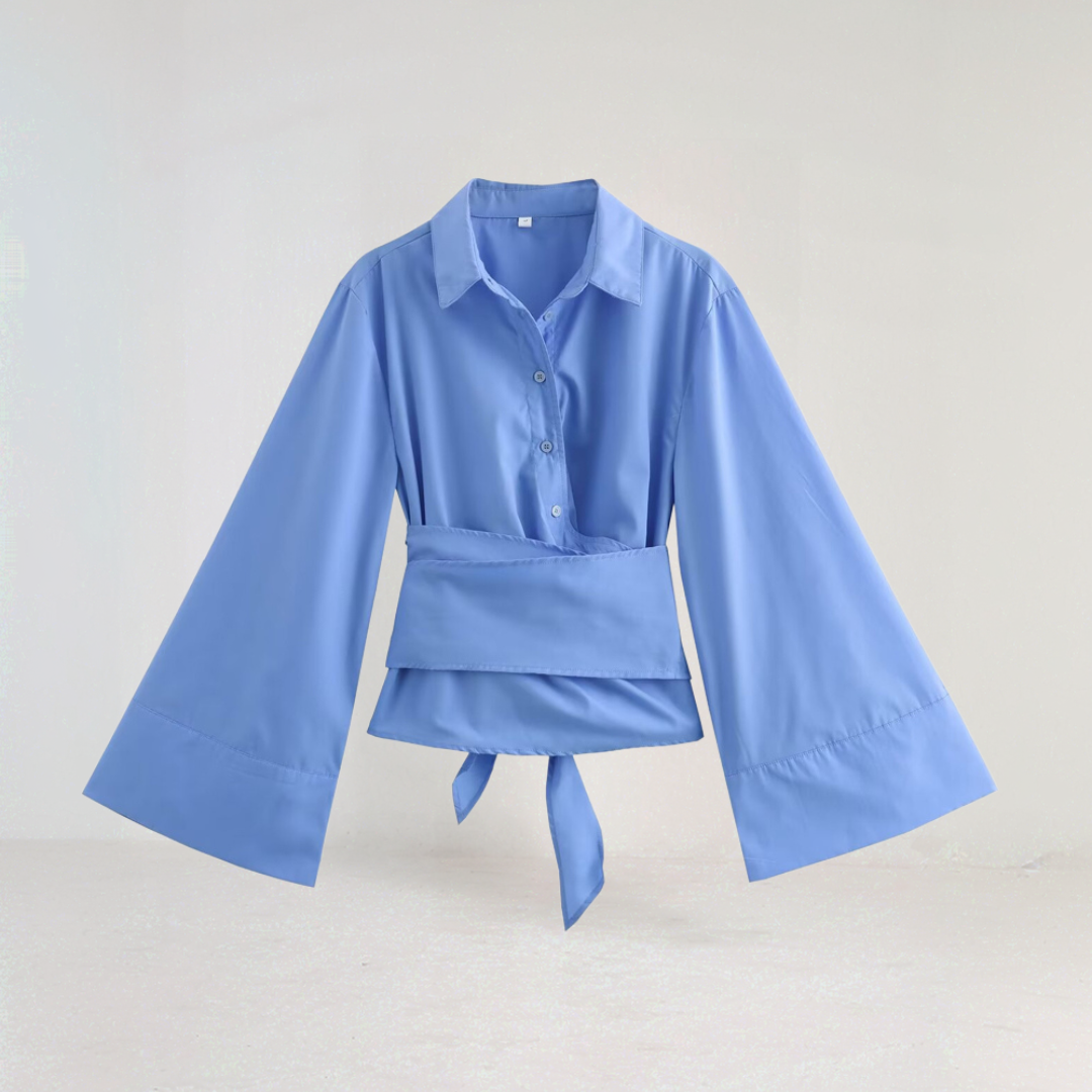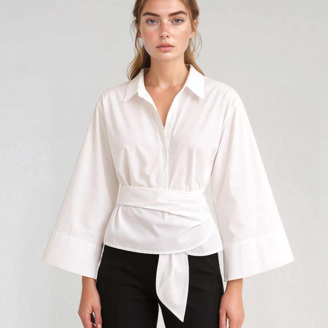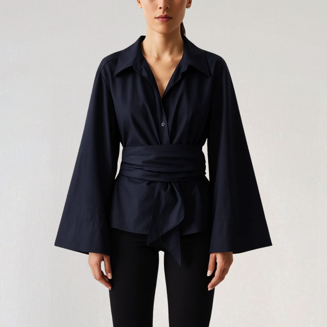 - Udvidede ærmer, der tilføjer et strejf af femininitet.