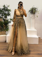 Adeline | Lang Blomstret Kjole i Tyll med Splid – Elegance og Raffinement