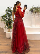 Denne lange kjole har et unikt blomsterdesign. Dens design med én skulder og den sidelange slids tilføjer et strejf af elegance.