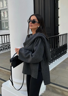 Denne kappejakke kombinerer tidløs sofistikering og moderne komfort. Dens flydende design med integreret tørklæde tilføjer et strejf af elegance til hvert outfit.