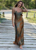 Αυτή η μακριά φούστα με σχέδιο γοητεύει με το μοτίβο της εμπνευσμένο από την πανίδα, τις λεπτές τιράντες και την κομψή ανοιχτή πλάτη. Η ρέουσα γραμμή της και το σατινέ φινίρισμα εξασφαλίζουν άνεση, ιδανική για ηλιόλουστες μέρες όπως και για καλοκαιρινές βραδιές.