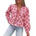 Αυτή η μπλούζα παρουσιάζει μια θηλυκή σιλουέτα και ένα γοητευτικό λουλουδάτο μοτίβο. Ο σχεδιασμός της με μακριά μανίκια και ο μοναδικός γιακάς προσθέτουν μια πινελιά κομψότητας. Ιδανική για χαλαρές περιστάσεις, συνδυάζει στυλ και άνεση.