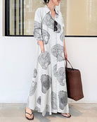 This long shirt dress charms with its fluid cut and artistic touch. Its structured and original design is suitable for both relaxed days and more dressed-up outings. The long sleeves and shirt collar add an elegant note to this decidedly casual model.