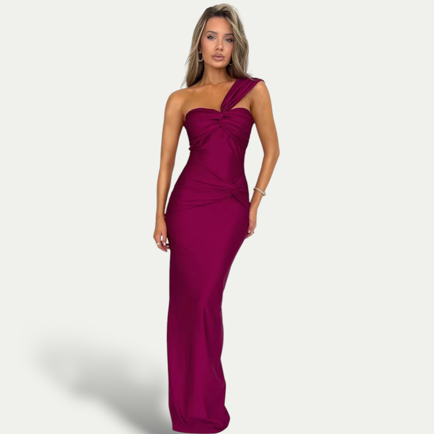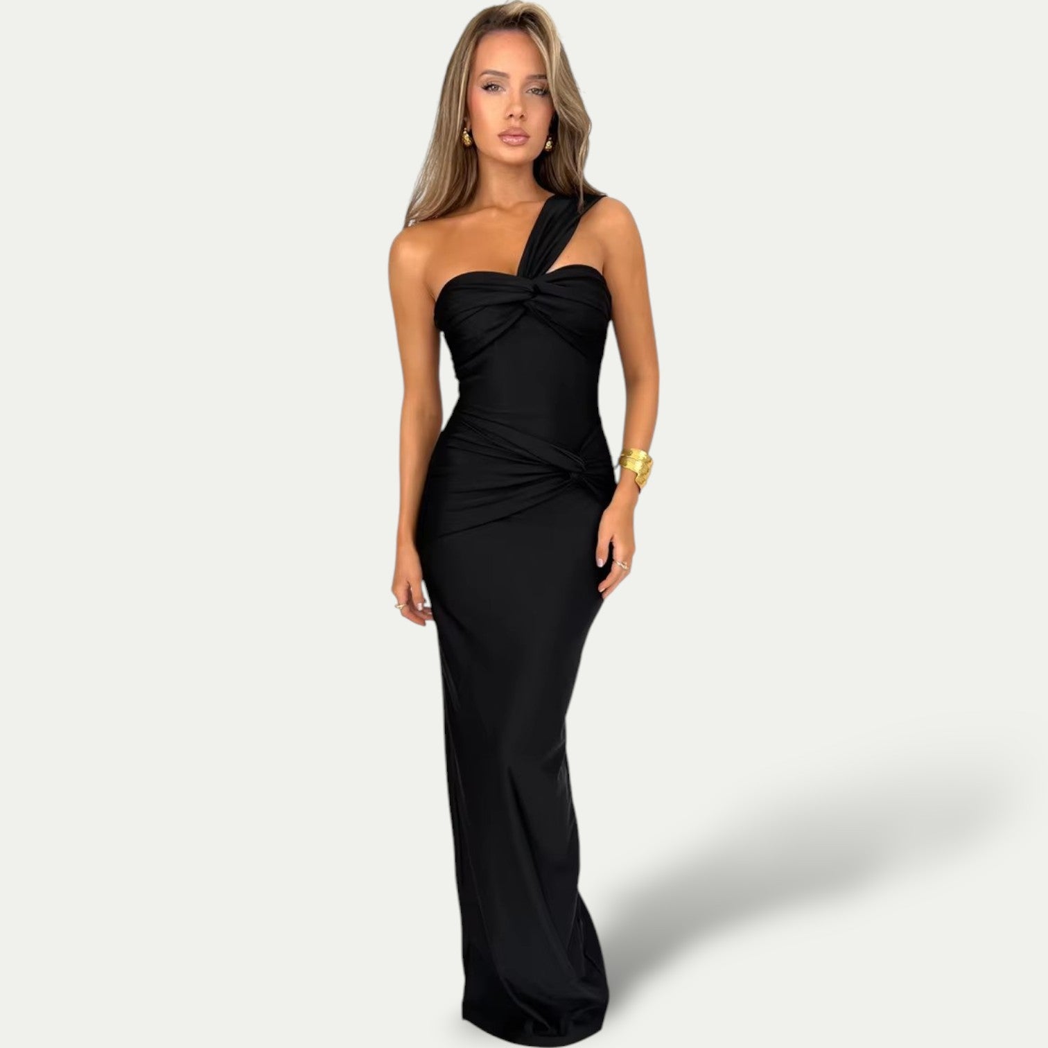 Carla | Elegant Fitted Dress – Maxi Length and Asymmetrical Detail
