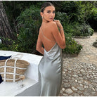 Tässä midi-mekossa on minimalistinen leikkaus ja tyylikäs niskalenkki. Sen virtaava siluetti myötäilee kehoa herkällä tavalla, tarjoten naisellisen ilmeen, joka on ihanteellinen erilaisiin kesätilaisuuksiin. Kangas takaa ylellisen tunteen jopa kuumalla säällä.