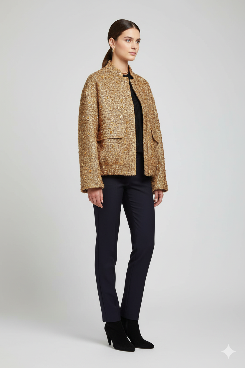 Bérénice | Veste Courte Dorée — Élégance Étincelante & Charme Festif