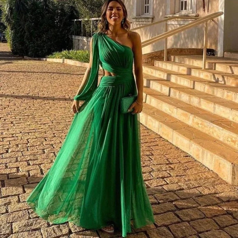 ואפה | שמלת מקסי מקופלת בכתף אסימטרית – אלגנטיות ומודרניות