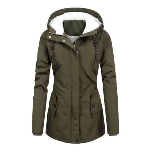 סניה | מעיל ארוך לנשים — עם כובע בדולרים וכיסים עם כפתורים