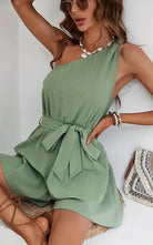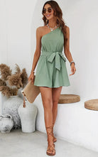Questa combinazione corta a una spalla offre una silhouette moderna e raffinata. Perfetta per le giornate calde, unisce comfort e stile. Il suo design asimmetrico aggiunge un tocco di originalità al vostro guardaroba.