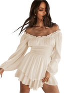 この肩出しの夏のドレスは、軽やかさとエレガンスを兼ね備えています。暑い日には最適で、シルエットを引き立てながら快適さを提供します。さまざまなスタイルに合わせるために、複数の色とサイズで利用可能です。