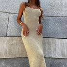 このロングドレスは、自然で洗練された流れでシルエットを引き立てます。ミニマリストデザインは、日中のコーディネートにもエレガントな夜の装いにもぴったりです。細いストラップとスクエアネックが控えめな印象を与えます。