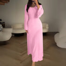 Denne lange kjolen med lange ermer gir en feminin og flatterende silhuett. Den er tilgjengelig i flere farger og passer til alle anledninger. Dens tidløse design garanterer en uanstrengt eleganse.