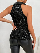 Charline | Top Zonder Mouwen Met Col – Glitterschittering En Chic Stijl
