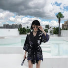 Deze kimono-jack voor dames is versierd met een verfijnd patroon van Japanse vogels, symbolen van harmonie en gratie. De ruime en vloeiende snit zorgt voor optimaal comfort, of het nu gaat om een casual look of een meer geklede outfit.