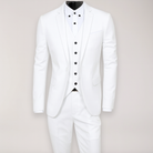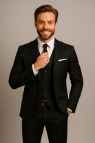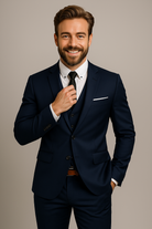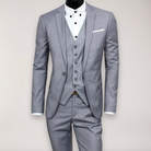 Este traje de tres piezas ofrece un corte slim fit moderno y líneas limpias que realzan la silueta masculina. Perfecto para eventos formales o reuniones profesionales, asegura un aspecto refinado y seguro.