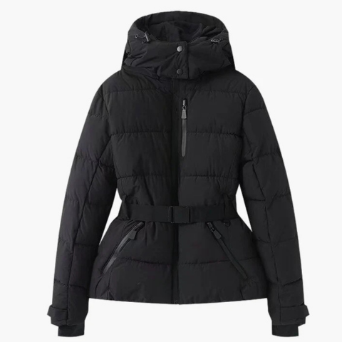 Giulia | Chaqueta de plumas con cinturón y capucha para mujer — Elegancia y Calidez Invernal
