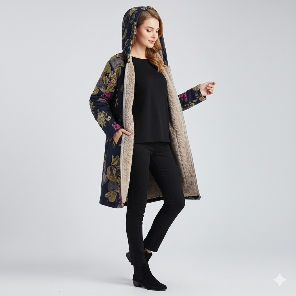 Sanae | Damjacka med Huvud — Mjuk Värme & Blommig Stil